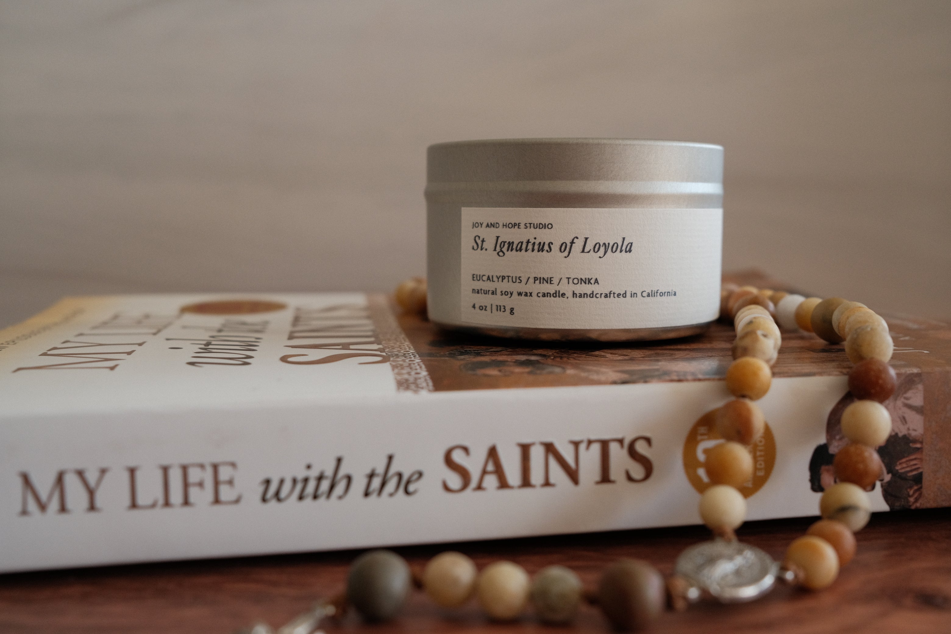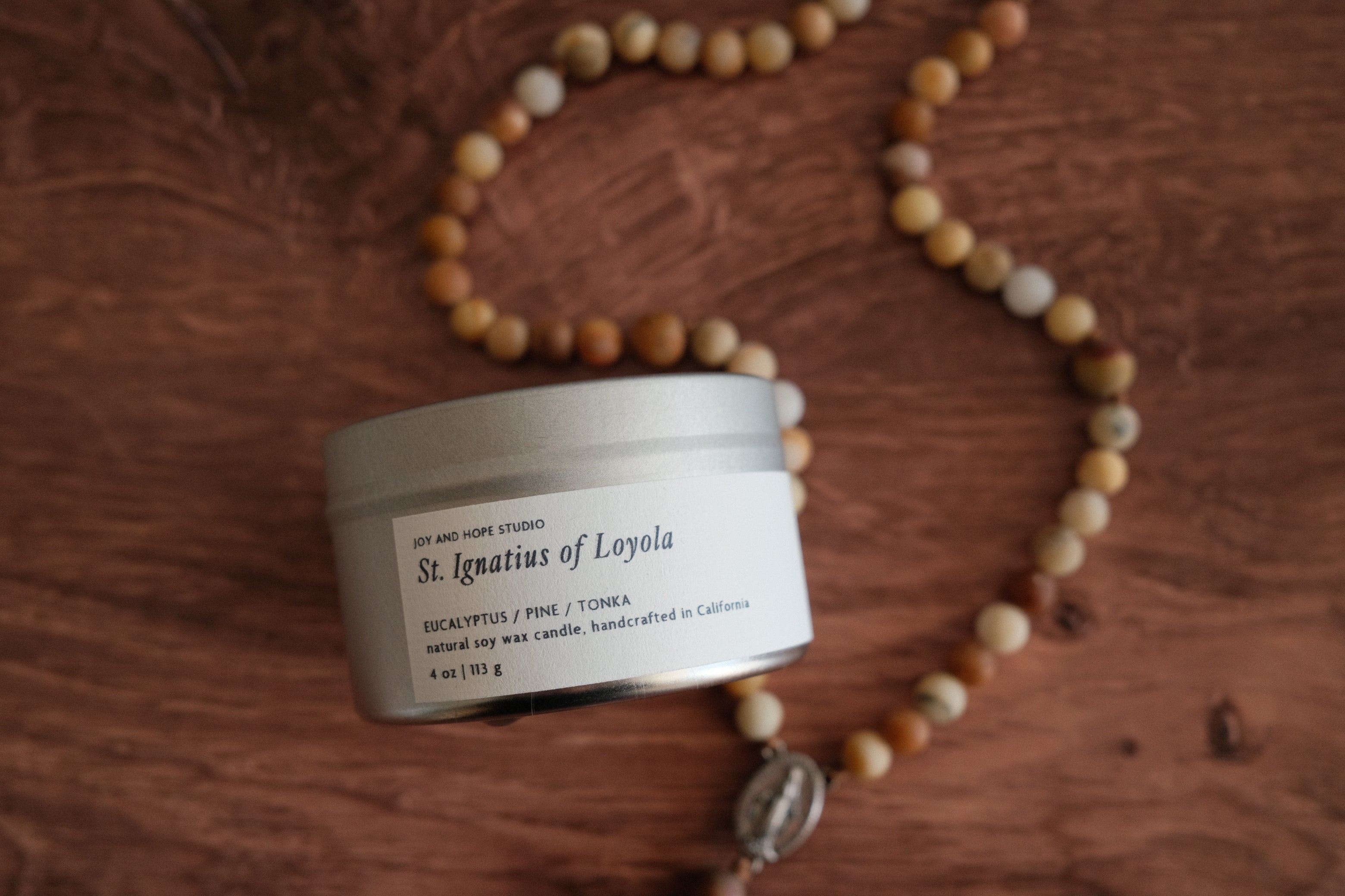 Inspired by the contemplative and pilgrim spirit of St. Ignatius and the serene greenery of his hometown in the Basque country, this candle blends fresh eucalyptus, crisp pine, and warm tonka. St. Ignatius of Loyola, pray for us