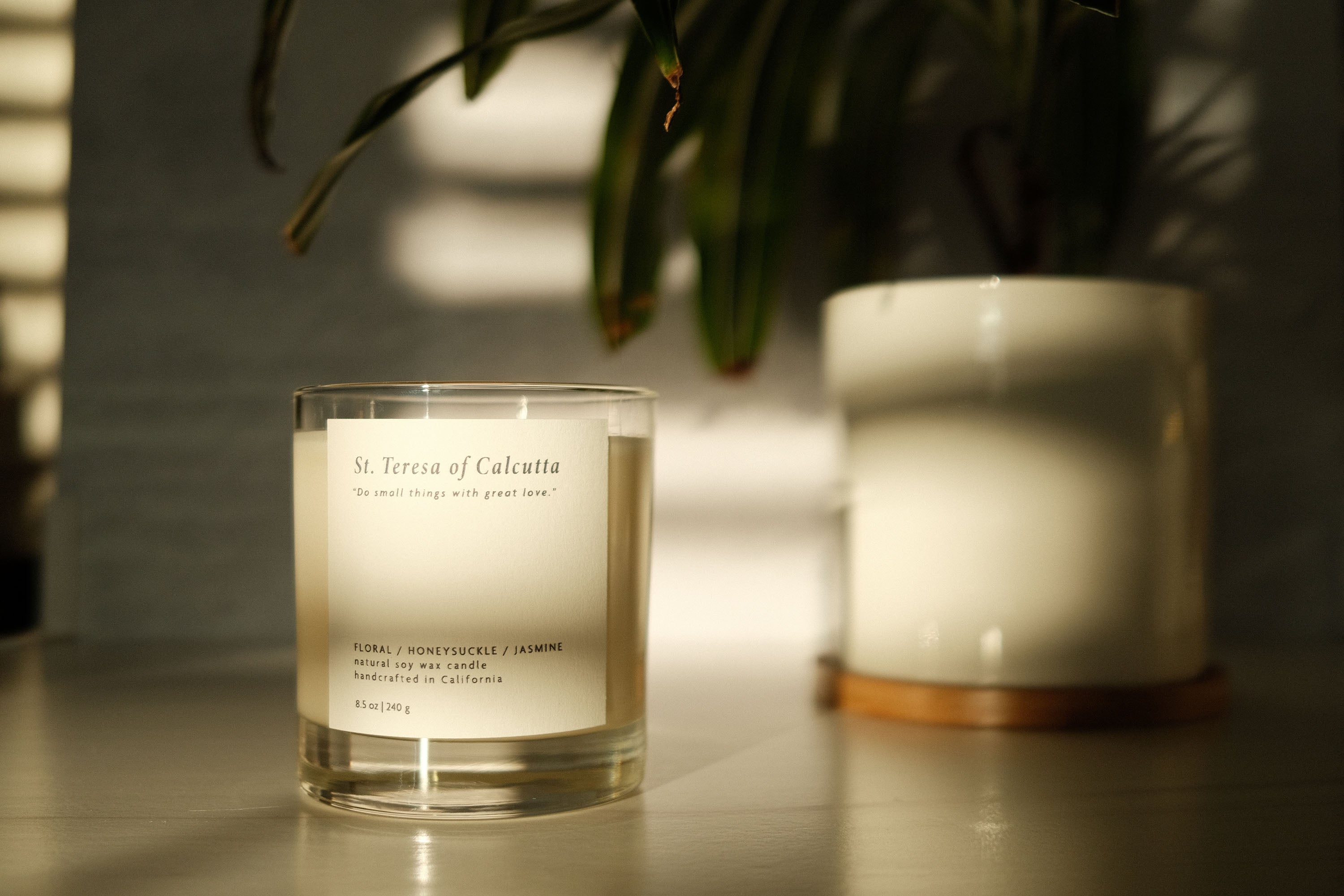 Inspired by the tender strength of Mother Teresa, this candle blends the sweetness of honeysuckle with the gentle, calming fragrance of jasmine—a flower cherished in India, where she lived out her mission of love. Soft and floral, it’s a reminder that even the smallest acts, offered with great love, can light up the world. St. Teresa of Calcutta, pray for us!
